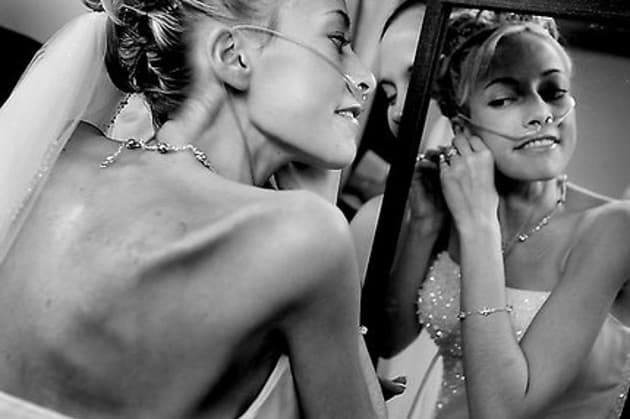 Respirar já era difícil e ela teve que usar oxigênio. A dor nas costas era tão intensa que a morfina prescrita pelos médicos já não adiantava mais. Seus órgãos começaram a falhar, mas isso não a impediu de se casar com seu grande amor e terem uma festa para celebrarem seus dias de vida juntos.