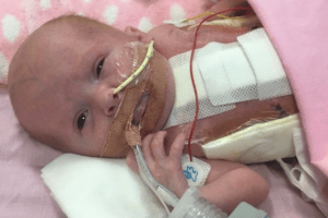 No Reino Unido, a pequena Vanellope nasceu com o coração para fora do corpo, desacreditada pelos médicos, e agora vem se mostrando uma grande guerreira.