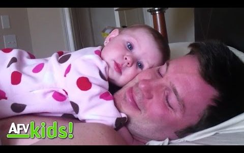 Um video muito fofo que mostra como uma garotinha está pronta para dormir abraçada ao papai quando ele simplesmente estala os dedos.