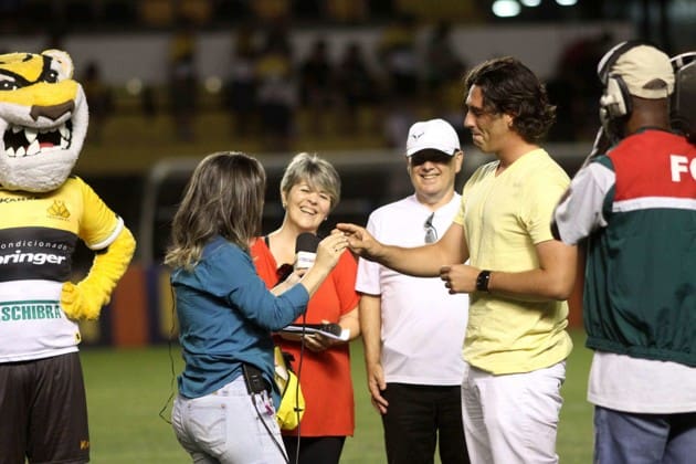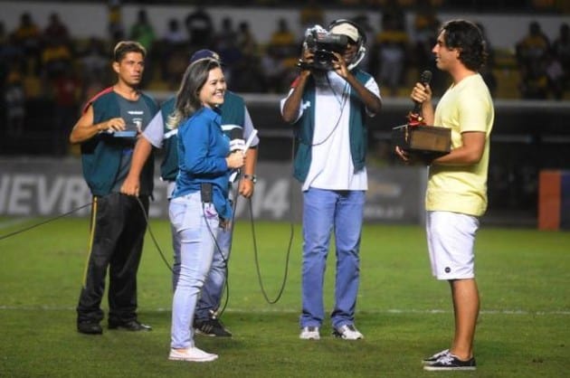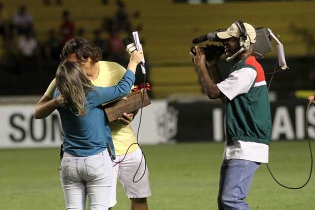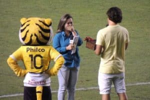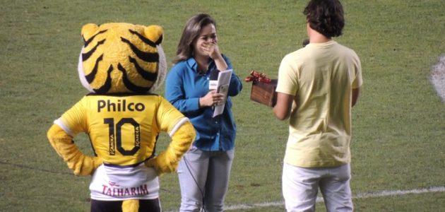 Repórter recebe pedido de casamento no intervalo de jogo de futebol